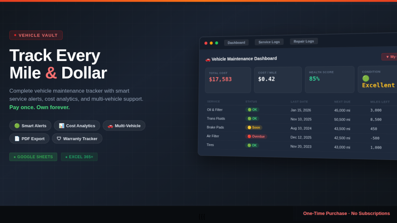 Take complete control of your car’s maintenance, repairs, upgrades, and total ownership costs — with no subscriptions...