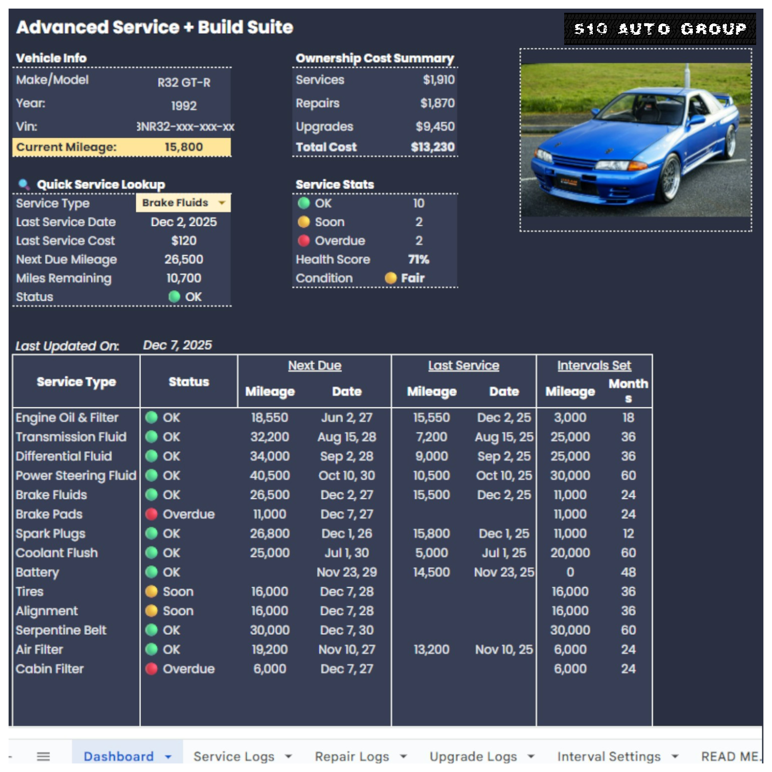 Take complete control of your car’s maintenance, repairs, upgrades, and total ownership costs — with no subscriptions...